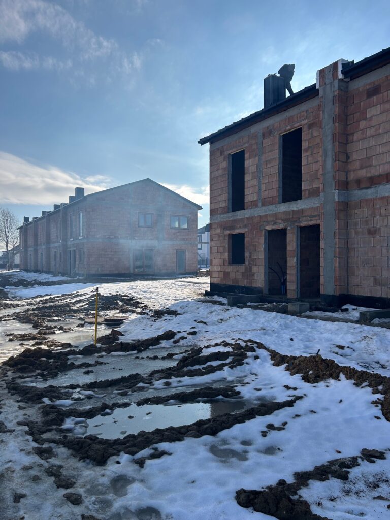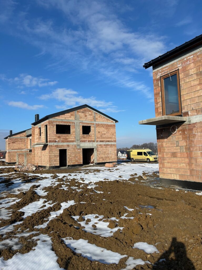 Kolejny etap już mocno zaawansowany 🙂 Stan surowy już wykonany, a w pierwszym szeregu już nawet stolarka okienna się pojawiła.